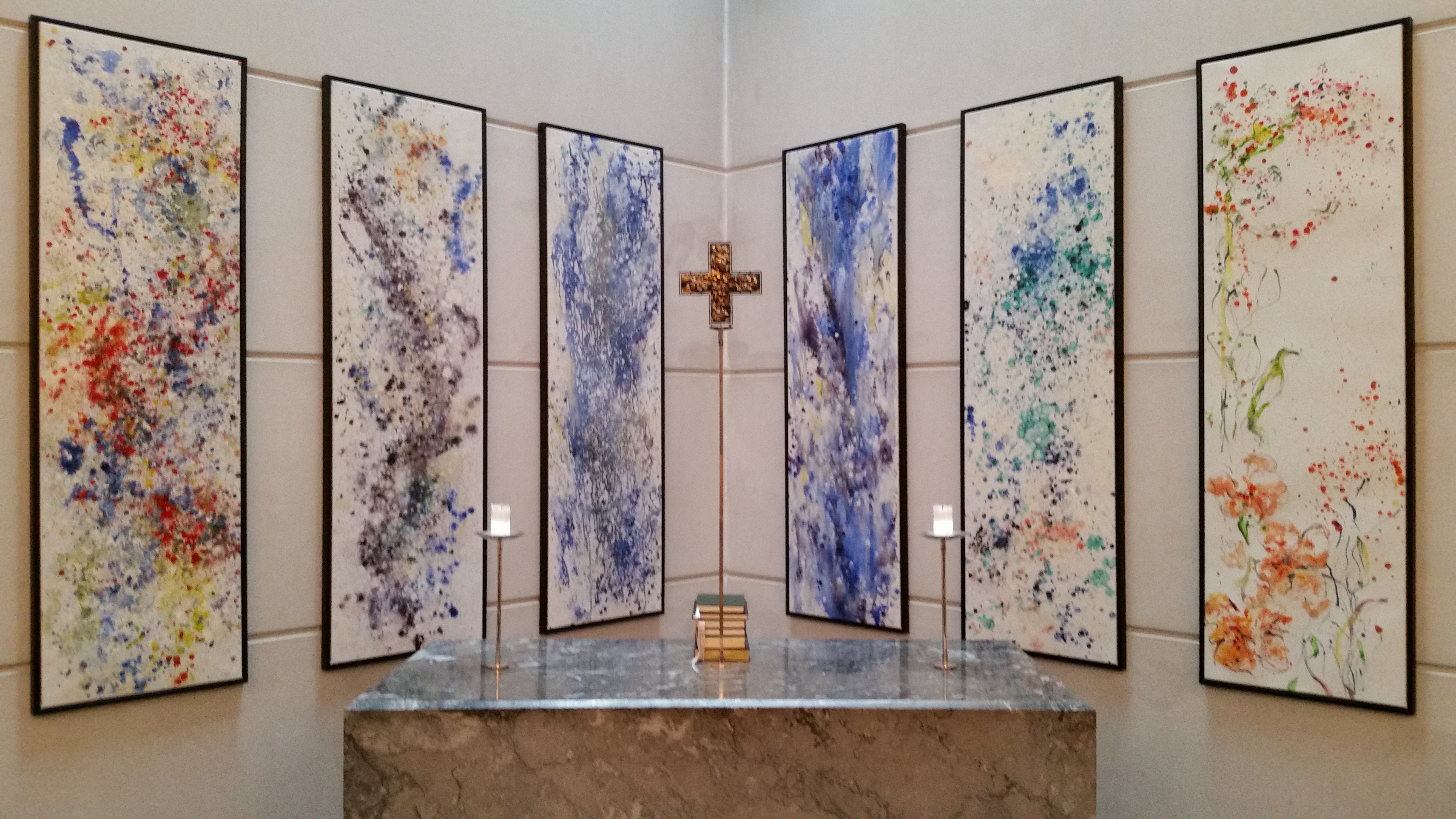 🇬🇧 My paintings in Skæring Church, Denmark.  Shown in 2019. An experiment to see how a church  without art could transform when art is a central part of the church room. The architect of this church is Exner.
