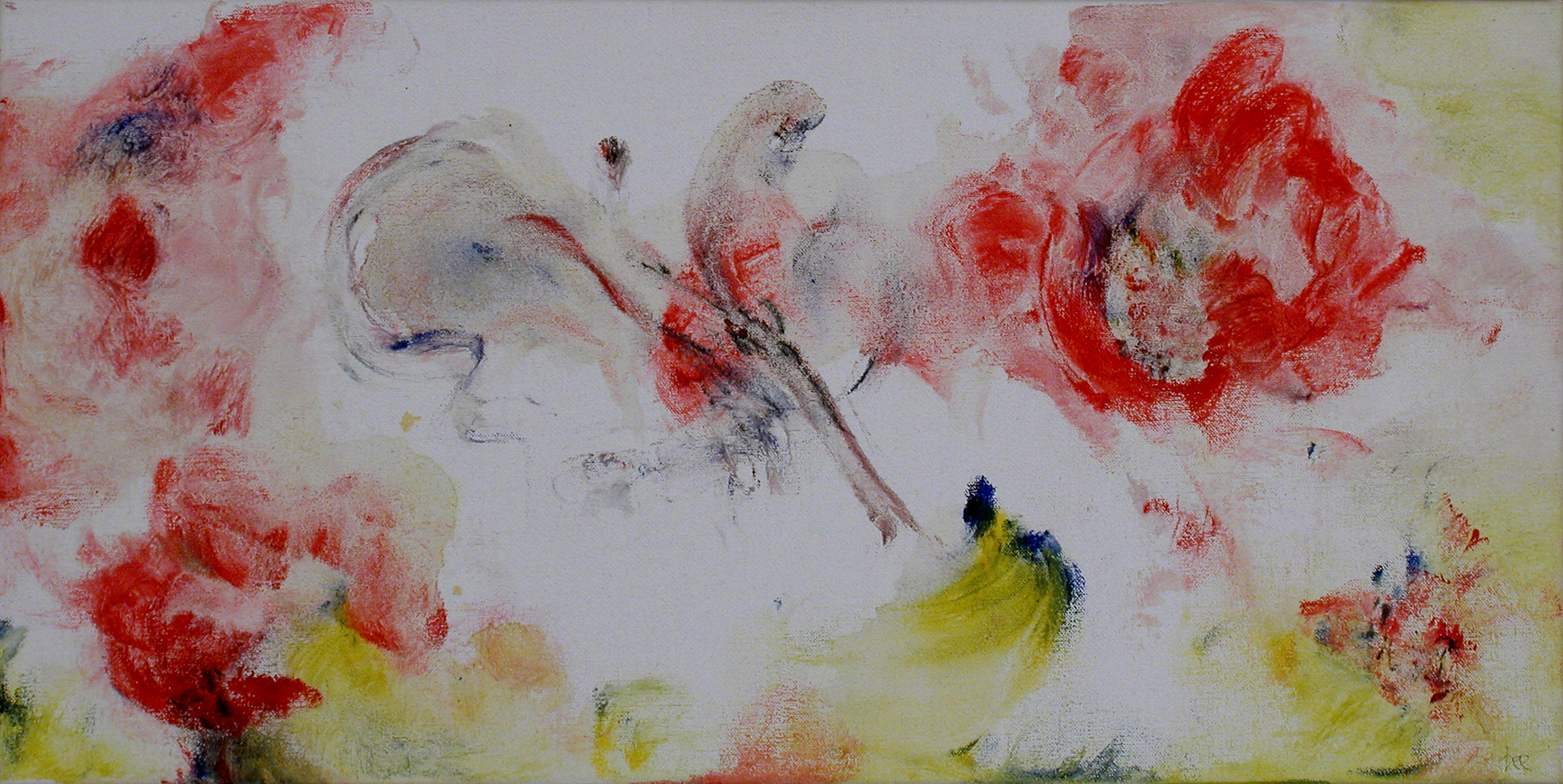 Flowers as a source of Joy. It is joyful to sense the beautiful colours, the fragrance, the delicate, tender substance of the flowers. It is inspiration and harmony. And a challenge to translate this delicate impression into paint and form.